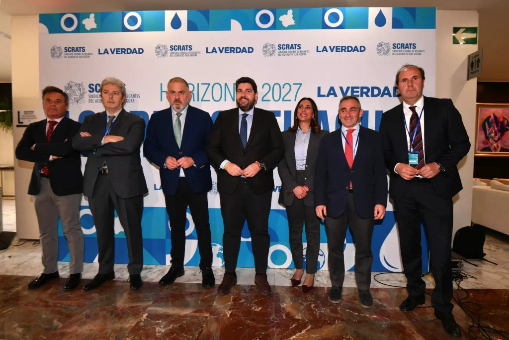 La duda de cómo se van a satisfacer las demandas de agua para el campo, la falta de una planificación hídrica nacional o la necesidad de invertir en más infraestructuras que favorezcan una mejor gestión del agua han sido los temas principales que los responsables políticos en materia de agricultura de la Región de Murcia, Comunidad de Madrid, Comunidad Valenciana y Andalucía han puesto sobre la mesa en el primer debate del foro ‘Horizonte 2027: los retos del agua’, organizado por el Sindicato Central de Regantes del Acueducto Tajo-Segura (Scrats) y LA VERDAD. La política hídrica actual en España «nos está alejando de la competitividad» con otros mercados extranjeros. Y piden a los técnicos que ayuden a mejorar la gestión de los recursos hídricos; «estos se ven sobrepasados por la ideología», opinó Rafael García, viceconsejero de Medio Ambiente, Agricultura y Ordenación del Territorio de Madrid.
